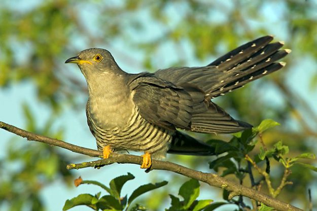 描述:体大(55厘米)且尾极长的地鹃。头及上背灰色,下体褐灰,喉及胸具深色箭状条纹,背、翼及尾深金属绿色,尾羽端白。